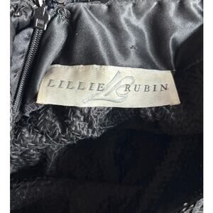 Features include structured shoulders, a flattering fitted silhouette, and elegant long sleeves (classic Lillie Rubin drama!). Perfect for formal events, galas, or holiday parties.