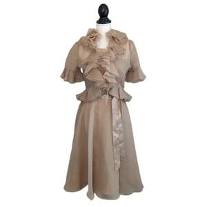 Vintage Lillie Rubin Light Brown Tan Mesh Ruffle Dress Coquette Romantic Twee