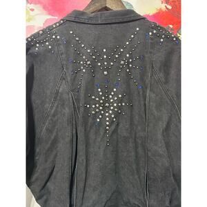 Vintage Lillie Rubin Women Black Studded Rhinestone Cropped Jean Jacket 70s 80s 90s Bomber