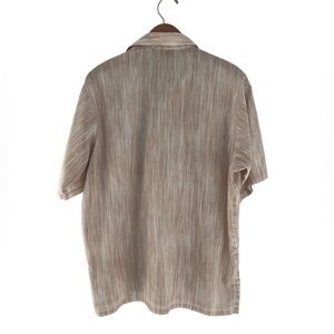 Vintage Lilly Dache Men's Short Sleeve Shirt Tan Stripe Retro Design 1970's