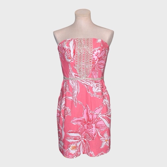 Vintage Lilly Pulitzer Bloomy Strapless Dress White Label