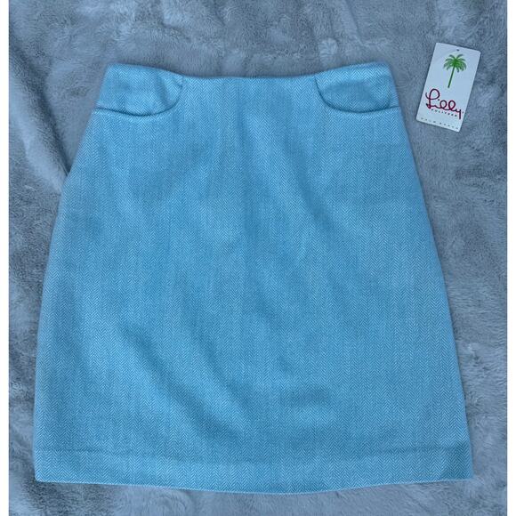 Elevate your fall wardrobe with this chic Lilly Pulitzer mini skirt in a soft sky blue herringbone pattern. Tailored in a premium wool blend with full lining and a smooth side zip, it delivers that perfect blend of classic prep and cool-girl polish. Whether styled with loafers and a sweater or boots and a blazer, this flattering piece is a year-round standout. Brand new with tags, never worn.