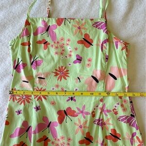Beautiful pattern of butterfly and flowers - perfect dress for so many occasions:) Size 4. Length about 34”. Pit to pit 15”. Waist 14”. Lined. Soft cotton material. Great vintage condition! No flaws:)