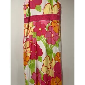 Vintage Lilly Pulitzer Maxi Dress Beaded Key Hole Pink Yellow Florals Size 8 JL