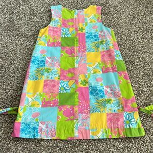 Vintage Lilly Pulitzer Patchwork Lemon Flower Shift Dress Girls Size 7