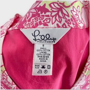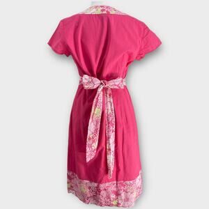 Vintage Lilly Pulitzer Pink Floral Lions White Label Tie Back Sheath Dress Small