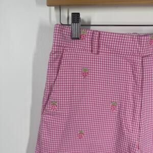 Vintage Lilly Pulitzer Short Women 2 Pink White Gingham Embroidered Strawberry