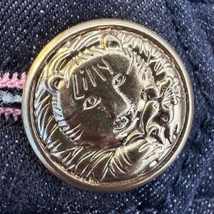 Vintage Lilly Pulitzer Skirt Dark Gray Twill Denim Pencil Lion Button Size 8 Med