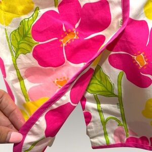 Rare deadstock 1990s Lilly Pulitzer strapless dress β brand new with tags! This vibrant Palm Beach piece features a bold floral print in pink, yellow, and green with the signature βLillyβ hidden in the pattern. Made from a stretchy cotton blend with a flattering belted waist and smocked back for comfort.