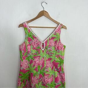 Lilly Pulitzer Taboo Pink Green Elephant Print Keyhole Shift Dress Size 10