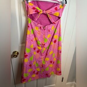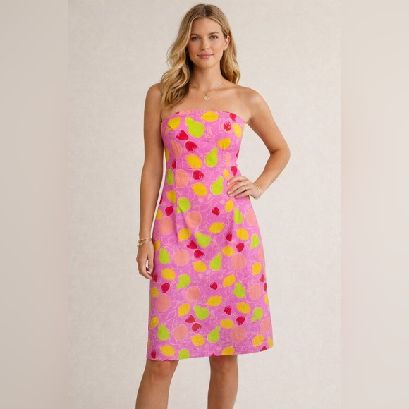 Vintage Lilly Pulitzer White Label Strapless Dress Size 8 Marzipan Fruit Print