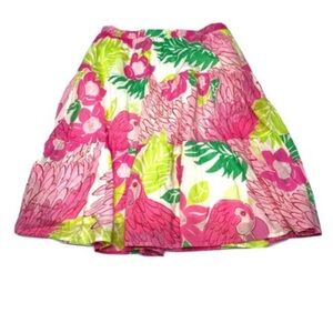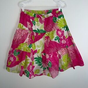 Vintage Lilly Pulitzer Womens Pink Parrot Tropical Pull On Fit and Flare Skirt