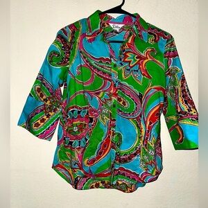 Vintage Lilly Pulitzer women’s paisley print button front collared blouse 8