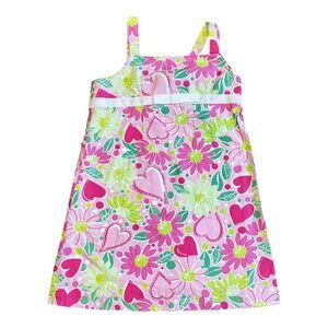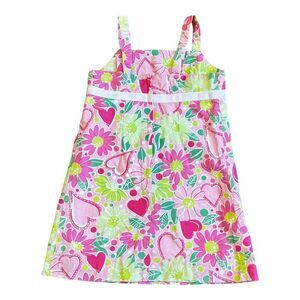 Vintage Lilly Pulitzer Girls Floral Heart Lucky in Love Tank Shift Dress Size 4