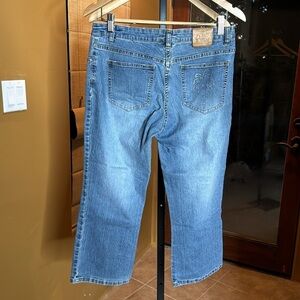 Palm blue stretch Denim Capri size 6 made in Hong Kong