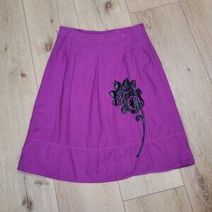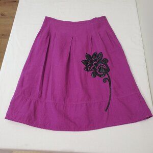 Vintage Lily Stanhope Womens Skirt Size 6 Purple Gothic Black Flower Linen Midi