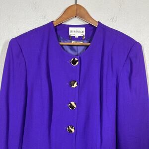 Vintage Lily & Taylor Blazer Long Purple Animal Print Long Sleeve - 14