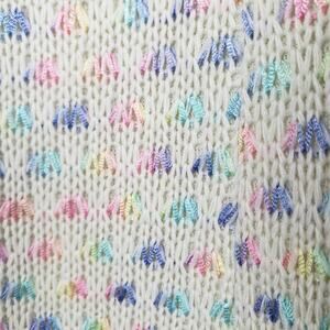 Ivory white, pink, green, blue pastels. Knit jacket with poly trim. Kimono / military style cut. Perfect for Easter.