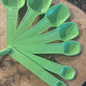 Full Set of vintage lime green Tupperware measuring spoons, in like new condition.