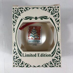 Vintage Limited Edition 1990 USPS 25 Cent Stamp Ornament, Greetings USA, Ball