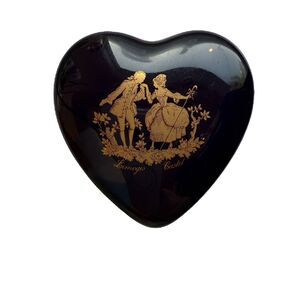 Vintage Limoges Castel Porcelain Heart Trinket Box Cobalt Blue 22K Gold France