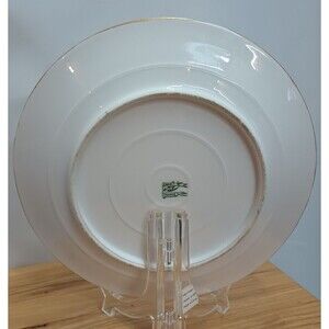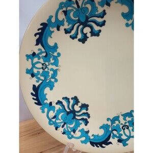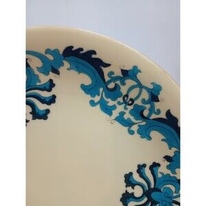 Vintage Limoges France Plate Yellow Blue Scrollwork CRACK. No chips or crazing. One slight crack look over photos.