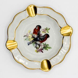 Vintage Porcelain Bird Design Ashtray Trinket Dish with Gold Trim Accents