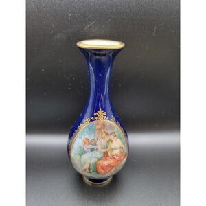 Vintage Limoges Porcelain Bud Vase France Cobalt Blue Gold 5"