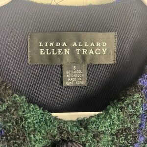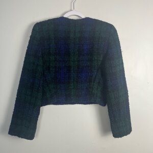 Vintage Linda Allard Ellen Tracy 90s Blue and Green Plaid Cropped Wool Blazer 8