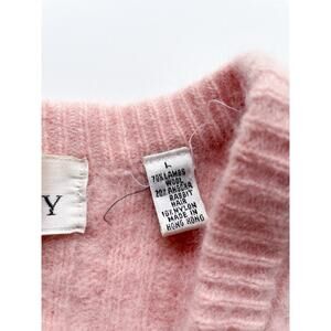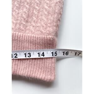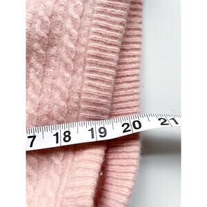 Beautiful light pink sleeveless button down v-neck cardigan made of lambs wool, angora rabbit hair, and nylon. Cable knit design.