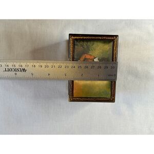 This is a made in Japan Linden music box that is tested and works and plays "We've Only Just Begun." It has a silk like top with a child and dog on it. There are chips in the lid that I have pictured.