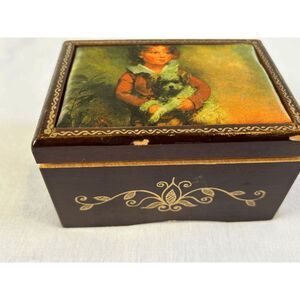 Vintage Linden Small Wooden Music Box "We've Only Just Begun" Child w/ Dog