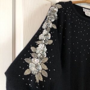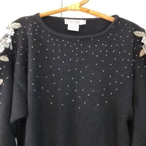 Vintage Lindsey Blake Sequin Beaded Wool Angora Blend Sweater Size Medium