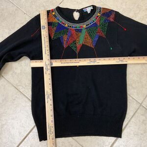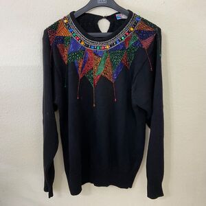 Vintage Lindsey Blake Sweater women size L w Embellished jewel tone beading.
