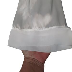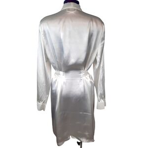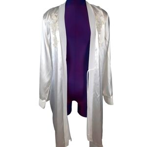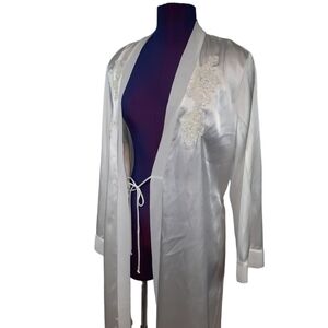 In fair condition Vintage Linea Donatella White Satin Robe Floral Sequin Embroidered Size L/XL.