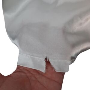 This is a pre-owned item that may show signs of wear. There are multiple flaws on this garment. Several cuts around bottom hem, 2 spots of discoloration on left sleeve, inside at back base sticker residue.