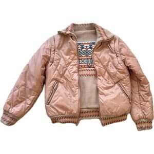 Vintage Lined Puffer Reversible Zip-Off Arms Women's Jacket Coat Andy Johns M