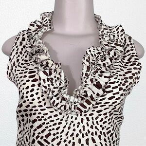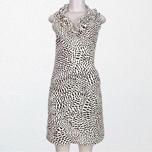 Vintage Linen Animal Print Mobwife Ruffled Kate Spade Classic Sheath Dress SZ XS