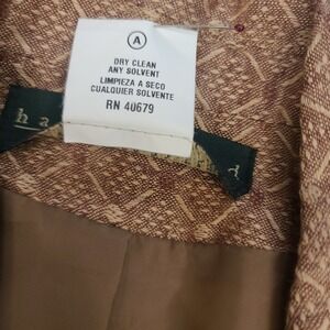 Elegant diamond pattern in Bronze and tan. Light and comfortable linen, so soft! The quality of this vintage piece is exceptional. Excellent pre-owned condition. Pit to pit 17" shoulder to hem 21"
