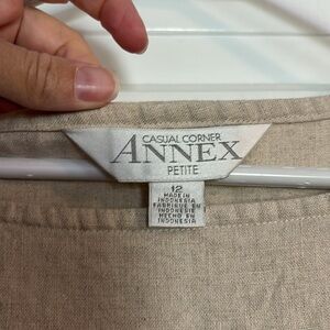 Size 12P. One thread loose as pictured and two pinholes in back as pictured. Bust aprox 19 by length aprox 46.5. Price reflects.