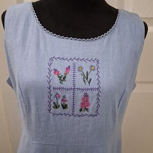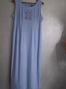 Vintage Linen Blend Light Blue Maxi Dress Size 12T