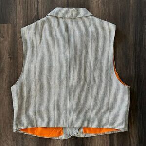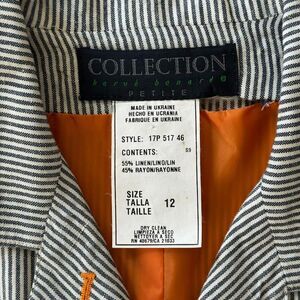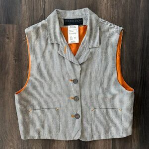 Vintage Linen Blend Striped Vest V-Neck Collar Button Up Women's Size 12 Petite