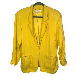 Vintage Linen Blend Yellow Oversized Blazer, Size 12