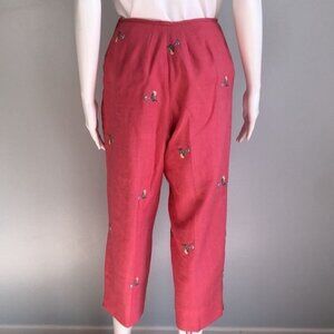 Vintage Linen Cocktail Motif Party Crop Pants