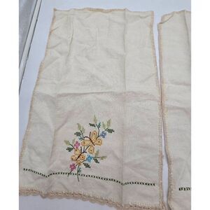 Vintage Linen Hand-Embroidered Floral Table Decor Set Of 2 With Crochet Edges