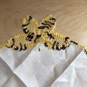Vintage Linen with Tatted Crocheted Golden Butterfly - NEW