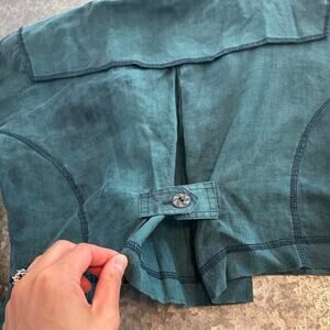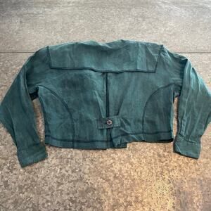 Vintage Linen Lagenlook Cropped Jacket Womens Medium Metropole Green Lightweight