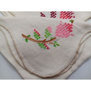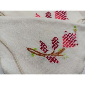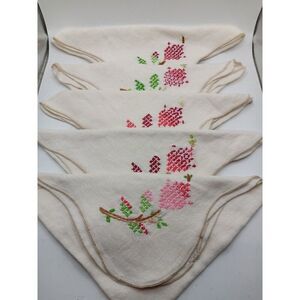 Vintage Linen Luncheon Napkins Pink & Red Rosebud Cross-stitch Set Of 5 Tea Time