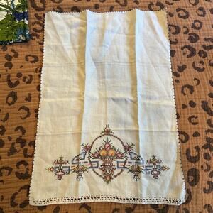 Vintage Linen Towels His Hers Embroidered Fingertip Floral Kitchen Turquoise