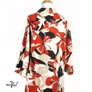 * Measurements: Bust: 50", Waist: 50", Sleeves: 18", Length Back Neckline to Hem: 34"